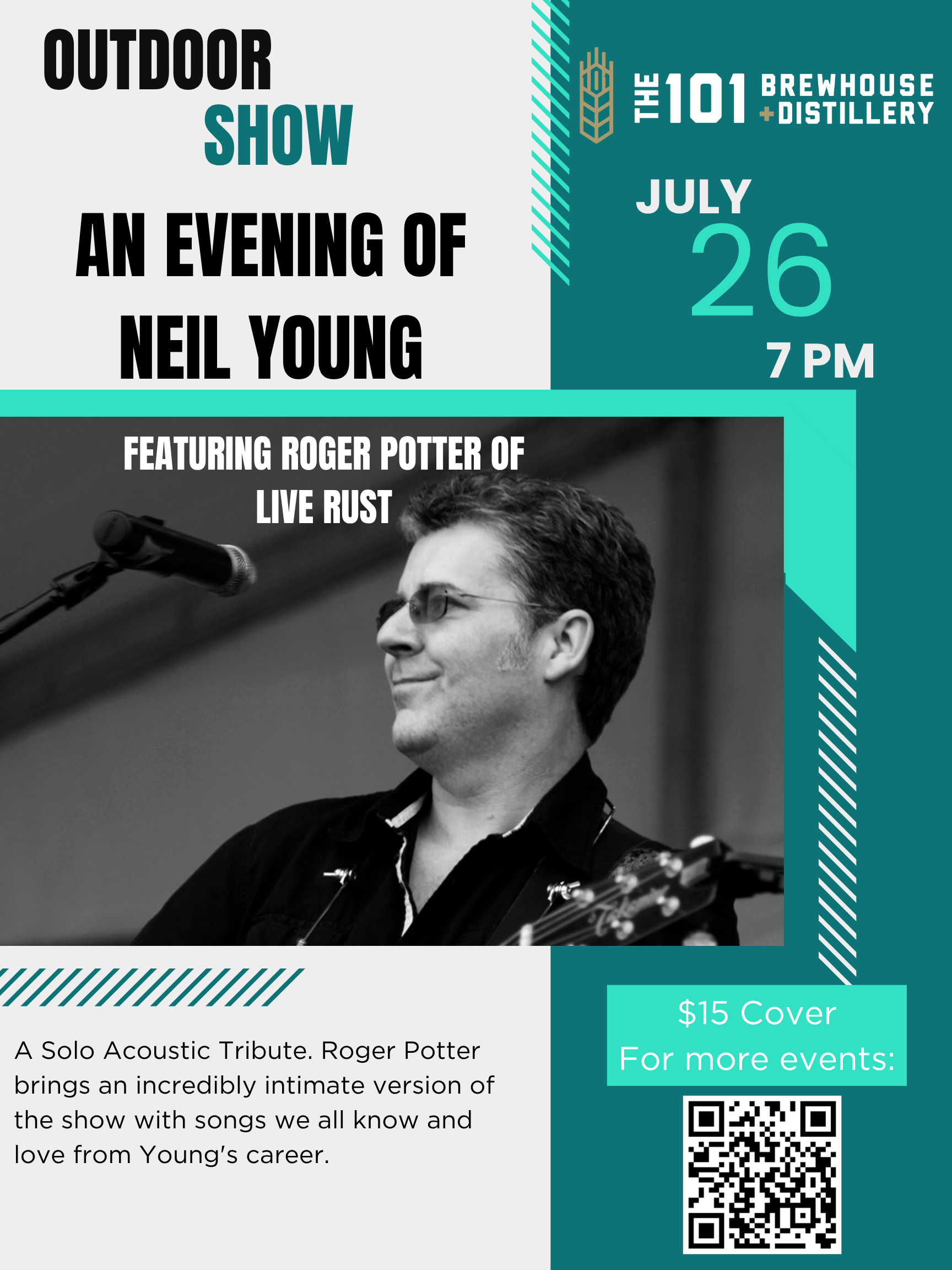 Featuring Roger Potter of LIVE RUST – A Solo Acoustic Tribute. Roger brings an incredibly intimate version of the show with songs we all know and love from Young’s career.