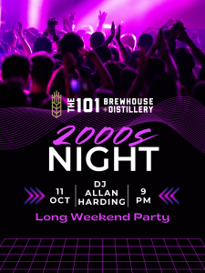 Celebrate the long week right at the 101 Brewhouse with nothing but 2000s bangers all night long! From Britney to Blink, Nelly to Outkast - DJ Allan Harding will be spinning all your fave throwbacks to dance the night away to.