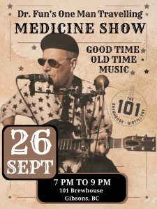 Join us at the 101 for an evening of blues music with Dr. Fun, the one man travelling show. Raw, soulful, and unforgettable. Dr. Fun brings the heart of the blues to life with gritty vocals and foot-tapping rhythms - all from one man.