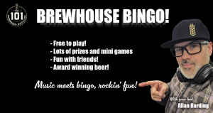 Come start the long weekend right at The 101 with Brewhouse Bingo! Super Host Allan Harding mashes up some awesome tunes and keeps the party rolling with at least four chances to play and win! This is a free community event where we provide the Bingo Cards and dabbers and all you have to do...